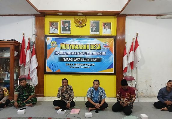Kamis,26 Februari 2026,Pemerintah Desa Margomulyo menggelar Musyawarah Desa (Musdes) dalam rangka Laporan Tahunan Badan Usaha Milik Desa (BUMDes) “Margi Jaya Sejahtera”. Kegiatan ini dihadiri oleh Kepala Desa, perangkat desa, BPD, pengurus BUMDes, serta unsur lembaga desa lainnya.Di Aula Balai Desa Margomulyo
