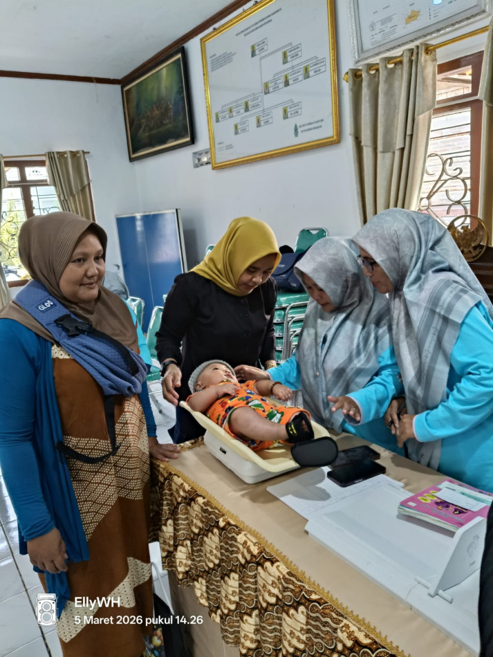Dalam kegiatan tersebut dilakukan penimbangan berat badan, pengukuran tinggi badan, serta pemantauan tumbuh kembang balita oleh kader posyandu dan petugas kesehatan.