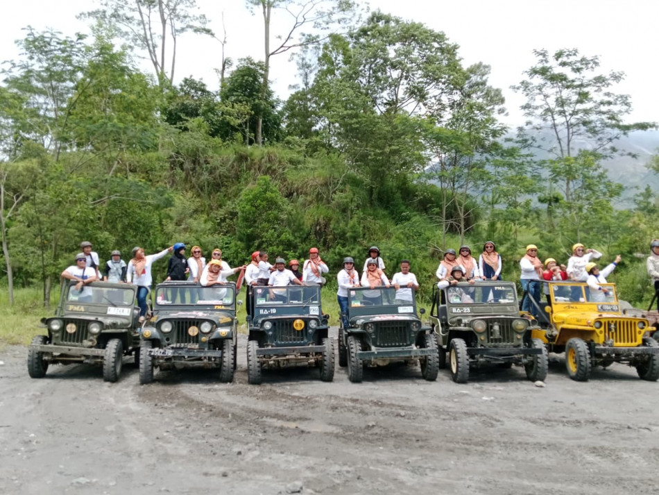 Destinasi pertama yang dikunjungi adalah kawasan lereng Gunung Merapi. Para peserta diajak menyusuri jejak erupsi di Museum Mini Sisa Hartaku (Museum Jeep Merapi) untuk mengenang sejarah dan mengambil pelajaran tentang kesiapsiagaan bencana. Perjalanan dilanjutkan dengan melihat keunikan fenomena alam di Batu Alien, sebuah situs batu besar menyerupai wajah manusia yang terbawa lahar panas.